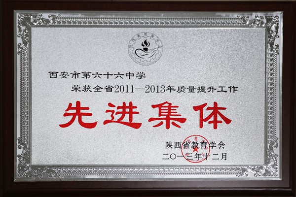 会上,表彰了全省质量提升工作先进单位。西安市第六十六中学三年来扎实推进质量提升工程,取得了突出的成绩,被评为全省“2011-2013年质量提升工作先进集体”,受到大会的表彰。