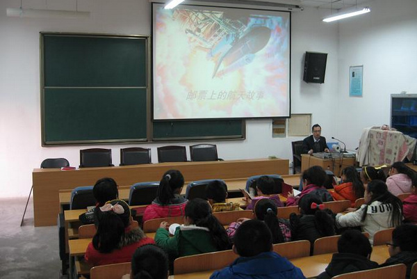 最后,由咸阳市邮票局副局长严周臣给学生做了以“邮票上的航天故事” 为主题的知识讲座,学生兴趣盎然,踊跃参与,学到了许多课堂以为的知识,为本次活动画上了圆满的句号。