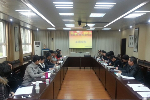 2014年3月19日下午,“西安中学大学区”英语学科联合教研活动在六十六中视频会议室举行。来自西安中学、西航一中以及六十六中英语教研组的老师们共聚一堂,开展高效课堂模式研讨活动。研讨会由英语教研组组长张富军主持,六十六中教研室刘宜攀副主任参加了会议。