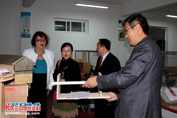 通用技术教室是最能让Dianna校长找到中美教育共同点的地方。看着同学们自己动手制作的各种物品,她说美国也有这样的课程,这就是鼓励学生手脑并用,培养和开发想象力、创造力的地方。在众多的学生作品中,她最喜欢的是 “鲁班锁” 和“多功能象棋盒”,并幽默地说可以写上“中国制造”卖到美国去。
