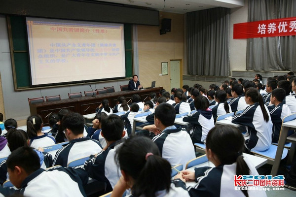2014年4月15日下午,长庆二中团委在该校多功能厅举办团的知识专题讲座,对138名入团积极分子进行了入团前的培训,该校团队工作负责人郭建群老师主讲。