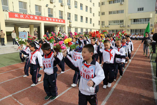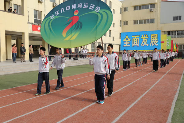 阳光灿烂,彩旗猎猎,暧风和煦,队鼓声声。4月28日早上,长庆八中第十二届田径运动会隆重开幕了。