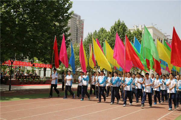 迎着春风,浴着骄阳,4月29日下午,六十六中第五十届春季田径运动会开幕式在学校运动场隆重举行。康俊杰书记致开幕词,全校师生参加了运动会开幕式。