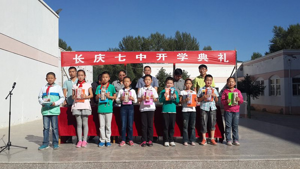 9月3日下午,长庆七中全体师生在校园隆重集会,举行新学年开学典礼。开学典礼上,学校表彰了上一学年各方面表现突出的10位校级先进教师,19名三好学生和10名优秀学生干部。教师代表和学生代表分别上台发言,表示要再接再厉,继续以优异的教学成果和学习成绩回报学校。校长张吉高同志在典礼上致辞,他代表学校对新同学的到来表示热烈欢迎,对受到表彰的教师和同学表示热烈的祝贺。他说:一年来,学校教育教学工作扎实开展, 课堂教学改革深入推进,青年教师的培养卓有成效,学生的养成教育效果显著,文明的校风、勤奋的学风逐步形成,丰富多彩的师生活动给予了全体师生展示的机会。部分教师参加延安市赛教活动,成绩喜人,特别是黄甲老师被评为陕西省教学能手,为广大老师树立了榜样。一年来在优秀生大量流失的情况下,我校综合素质测试和六年级毕业测试较好地完成了中心下达的教育教学指标。这一切都是全校师生齐心协力、负重奋进的成果。面对新学年、新挑战,张校长希望全体教师站在新的起跑线上认真审视自己,以满腔的热情投入到工作中去,本着“一切为了学生”的宗旨,踏实工作,率先垂范,加强学习,注重修炼,尊重学生,循循善诱,绝不放弃任何一个学生,用教书育人的优异成绩和默默奉献的崇高师德,赢得学生和家长的尊重。同时,他也代表学校对全体学生提出了殷切期望,要求全体学生把精力集中到学习上来,发奋努力,勤学多问,在学会学习的同时学会做人,成为德、智、体、美、劳全面发展的学生。