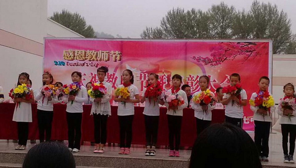 少先队员手捧鲜花,用稚嫩而深情的语言向敬爱的老师致以节日的美好祝福。校长张吉高热情洋溢的致辞,充满了对教师的关心和关爱之情。张校长首先向广大教师致以节日最美好的祝福,同时也感谢石油普教中心、采油一厂、河庄坪物业处等单位对学校发展的支持和帮助。最后张校长对广大教师提出了殷切的期望:希望每位教师都能成为师德高尚,业务过硬,勤于探索,善于钻研,关爱学生的学习型、智慧型和友爱型教师。