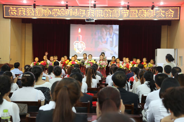 9月10日,长庆泾渭小学校园里彩旗飘飘,欢声笑语,处处洋溢着节日的气息。上午8:30“庆祝第30个教师节暨表彰会”在学校大会议室隆重召开。大会对2013——2014学年教育教学上涌现出来的模范教师、优秀教师、优秀班主任和优秀集体进行了表彰,同时也对全体教职工表达了深深的节日祝福。
