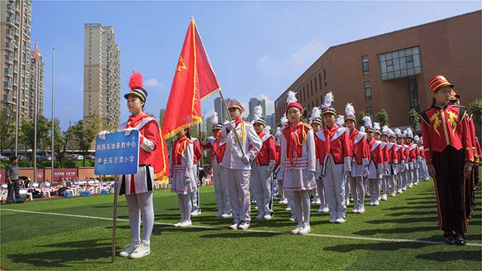 9月29日,长庆泾渭小学84名少先队员组成的“石油花”鼓号队,在西安曲江一小参加了由共青团陕西省委、陕西省教育厅联合举办的陕西省少先队鼓号队大赛。有来自延安、咸阳、商洛等地区等一共9支参赛队伍参加了本次大赛。