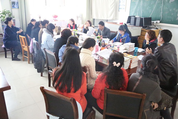 2014年10月31日上午,长庆泾渭小学主管教学的杨校长,教导处杨主任、张老师,教研室罗老师和一年级组全体老师在一年级办公室召开汉语拼音过关测试成绩分析会。