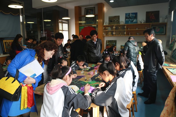 现场观看长庆未央湖学校纸雕制作 摄影:章启忠