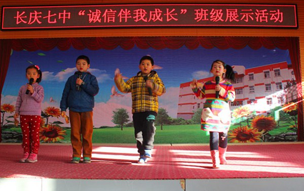 诚信是人类社会共有的一项根本性道德原则和行为准则,是我国自古以来尊奉的道德原则和立身治国之本,也是当前我国社会政治、经济、文化、司法、教育等活动中的一条重要原则。诚信教育是人生的必修课,搞好诚信教育关乎祖国的未来。但诚信教育并不应该成为一句空话,而应该是贯穿在学生终身学习、生活的始终。针对目前社会道德水平迫切需要提高和学校发展的需要,长庆七中从11月份开始,以“诚信伴我成长”为主题,开展了丰富多彩的教育活动。