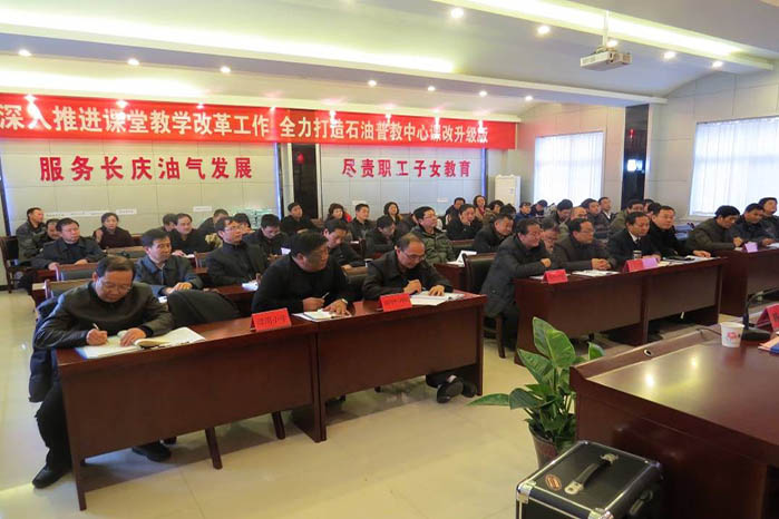 2014年12月10日,石油普教中心在所属礼泉分校召开现场会,实地观摩该校课堂教学改革情况;总结中心2014年课改工作,并对先进学校、先进教研室和先进个人进行了表彰奖励。中心班子成员、中心机关部门负责人,各学校校长、教研室主任及教师代表等近70人参加会议。