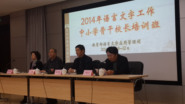 在培训会上,江苏省教育厅副厅长朱卫国介绍了江苏教育的发展情况,教育部语言文字应用管理司副司长彭兴颀、国家语委咨询委员傅永和、教育部语言文字应用管理司文字处处长孟庆瑜、北京语言大学教授陈双新、苏州市教育局基教处处长陶旭东、江苏师范大学教授杨亦鸣、苏州第十中学教授级中学高级教师徐思源等专家,分别作了《学习贯彻党的十八届四中全会精神全面实施语言文字规划纲要》、《现行汉字分析》、《汉字书写与中华优秀文化传承》、《〈通用规范汉字表〉介绍》、《苏州教育改革和发展》、《〈苏州共识〉与语言能力提升》、《经典诵读与传统文化教育》等专题报告。学员们还到国家级语言文字规范化示范校苏州市第十中学、江苏省语言文字规范化示范校苏州工业园区星港学校及中华经典诵读基地学校苏州工业园区星海小学实地参观学习。