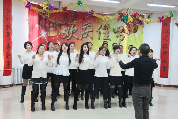 卢书记的新年致辞中,对一年来老师们的辛勤工作给予了极大的肯定,希望大家在新的一年里再接再厉,争取更大成绩。全校教师各显身手,自编自演了各具特色的合唱节目,生动演绎出教师们对新一年的美好愿望与祝福,赢得了在场教职工的热烈掌声。活动尾声一、二年级组全体教师们一曲《歌唱祖国》将活动带到高潮。