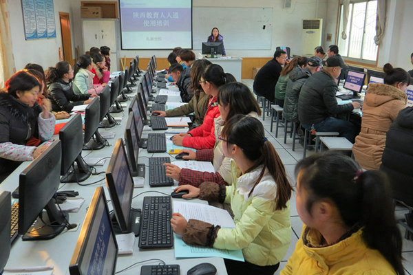 根据中心关于《开展2014年度“一师一优课,一课一名师”活动的通知》文件精神,12月29日下午,礼泉分校对教师进行了“人人通”服务平台操作的专项培训。此次培训由43名教师参与,主讲教师为信息教师马倩老师。