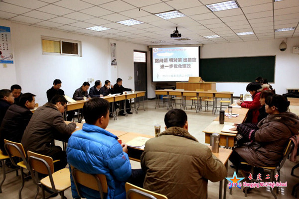2015年1月24日下午,长庆二中举办了以“摆问题、明对策、出措施、进一步优化课改”为主题的课改研讨活动。该校领导、相关部门主任、年级组长、教研组长、骨干教师、青年教师代表以及高效课堂优化课题组全体成员参加了研讨活动。