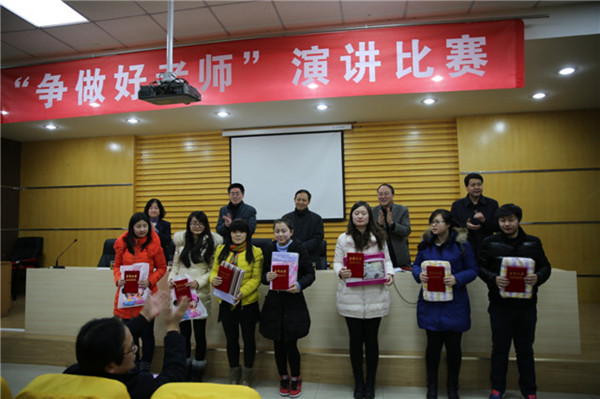 在欢快、和谐、愉快的气氛中,学校领导还为本学期参与“争做好教师”征文、演讲比赛的优秀老师颁发了荣誉证书和奖品。