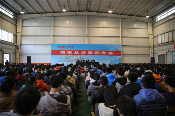 2015年2月11日上午,六十六中在学校体育馆召开期末学生总结表彰大会,高一、高二年级全体师生参加会议。大会由王金江副校长主持。