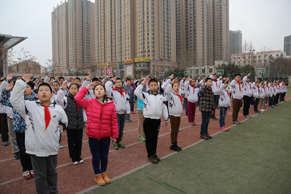 典礼由刘少阳书记主持。升旗仪式结束后,王华副校长向全校师生发表了热情洋溢的致辞,总结过去的成绩,提出新学期的希望:希望全体学生要学会做人,学会学习:要主动的学习、学用结合的学习、总结反思的学习;同时要求老师们帮助孩子创造未来的美好人生,通力合作,提高教育质量,发展学生,发展自己,发展学校。