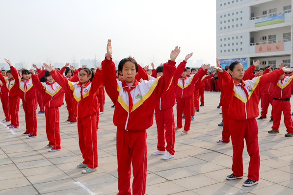 为丰富校园文体活动,进一步规范课间操的管理,提高广播体操的整体水平,增强学生体质,培养学生坚强意志和团结拼搏的精神,长庆泾渭小学于2015年3月16日下午成功举办了全校学生第九套广播操比赛。