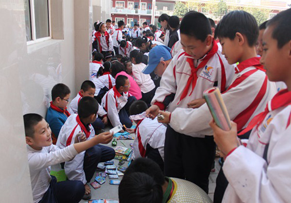 活动以班为单位,在班主任老师的带领下布置起自己的摊位,每一位学生都拿出了自己积攒下的零用钱,也从家里带来了自己看过的图书和杂志、及不用学习用品玩具等,有的同学甚至带来了十多本,从同学那里换(购)一本想看的书。