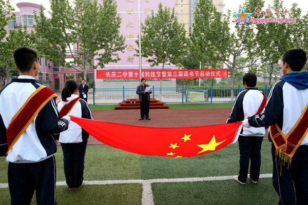 4月20日清晨,在庄重的升国旗仪式后,长庆二中举行了简约而隆重的第十届科技节、第三届师生读书节启动仪式。仪式由该校团队负责人郭建群老师主持,全体师生参加了活动。