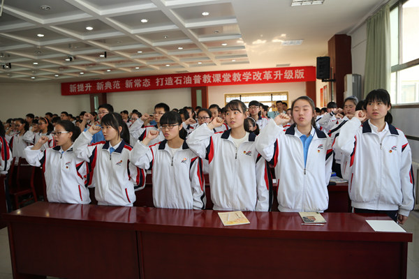 大会首先表彰了八中获得石油普教中心奖励的“优秀团员”6名,“优秀团干”1名。接着举行了入团仪式,共吸纳新团员161名,新团员在热情昂扬的团歌中戴上了团徽,面对团旗庄严宣誓。新老团员分别上台发言,郑重承诺坚守信念,努力学习,遵守纪律,执行团的决议,在学习,劳动,工作及其他社会活动中起模范作用,努力完成团支部交给的任务。