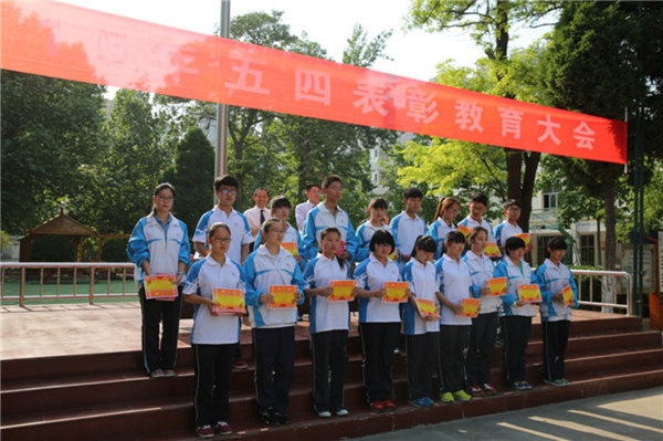 5月4日下午,六十六中在学校操场隆重举行2015年五四表彰大会。