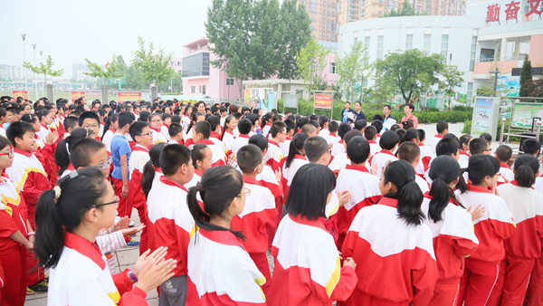 长庆泾渭小学为六年级学生颁发阳光体育证章、奖章