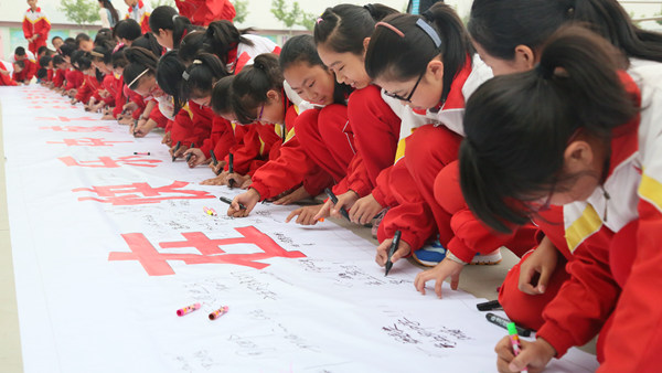 2015年5月7日早晨10点,长庆泾渭小学在操场举行了盛大的毕业生动员大会和签字仪式。
