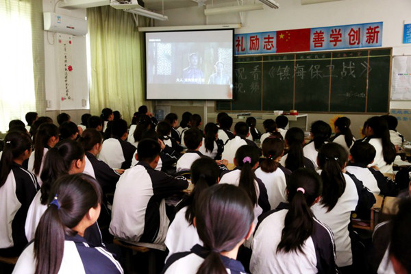 为了认真贯彻党的十八届三中、四中全会精神,坚持德育为先,把社会主义核心价值观融入国民教育全过程,充分发挥中小学爱国主义影视的“社会主义核心价值体系”教育功能,深入推进德育工作,长庆二中根据教育部《关于培育和践行社会主义核心价值观,进一步加强中小学德育工作的意见》精神及陕西石油普教中心公务通知的要求,于2015年5月25日拉开了该校爱国主义影视教育影评活动的序幕。当日,该校组织非毕业年级学生在各班教室观看了爱国主义教育电影--《镇海保卫战》。