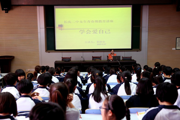 5月27日下午,长庆二中在该校多功能厅为高一全体女生举办了一次生动而又精彩的青春期教育讲座活动,活动以“学会做一个爱自己的女生”为主题。该校团队负责人郭建群老师主持了讲座活动,陕西省省级教学能手、该校资深教师董静春老师为学生做了专题报告。