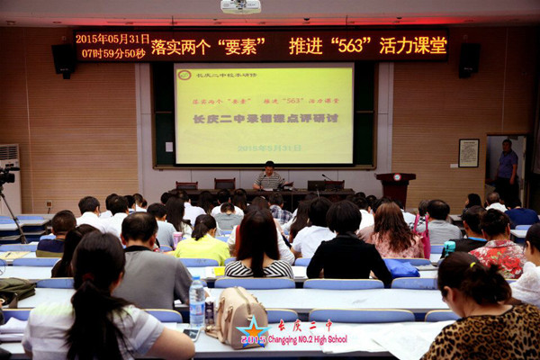 本学期以来,长庆二中为了进一步深化课堂教学改革,举办了以“落实中心两个‘要素’、推进‘563’活力课堂”为主旨的录像课评选活动,并于2015年5月31日,召开了总结研讨会。