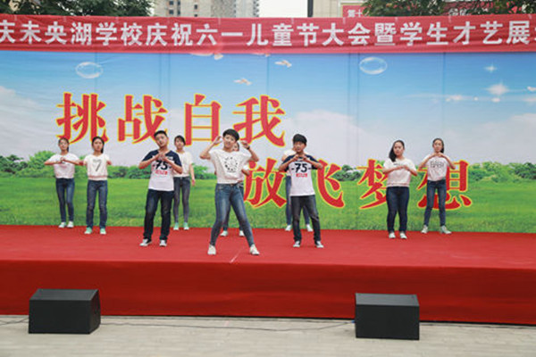 在主题为“挑战自我,放飞梦想”的学生才艺展演活动中,学生们表演了舞蹈、歌唱、相声等节目。舞台上,小演员们身着节日的盛装,挥洒自如、展现自我、展示技能,给老师和同学及与会嘉宾们带来美的享受。台下同学们个个兴高采烈,掌声此起彼伏。演出中,歌声与笑声齐飞,充满了庆祝“六一”儿童节的欢快气氛,整个校园形成了一片欢腾的海洋。