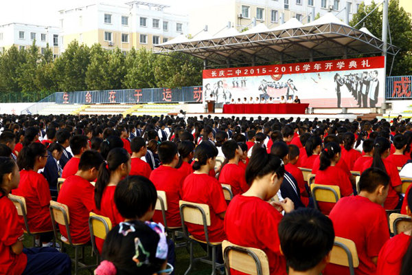 开学典礼以庄严的升国旗仪式拉开帷幕,该校马兆来、李正会、孙建国副校长分别宣读了长庆二中对上学年评选出的市、区、校级三好学生、优秀学生干部、先进班集体、优秀班主任、学习优秀学生及新高一入学成绩优秀学生进行表彰奖励的决定,高二(2)班等9个先进班集体、杨璐等45名三好学生、闵书嫣等27名优秀学生干部、刘佳琪等20名高中学习优秀学生、樊世玉等19名新高一入学成绩优秀学生受到表彰奖励,樊世玉还代表全体学生做了新学期表态发言。在热烈的掌声中,该校罗润子校长做了新学年学校工作动员讲话,他回顾了长庆二中过去一学年所取得的成绩,提出了新学年工作思路和所要开展的重点工作。为使各项工作落到实处,他对全体师生提出了几点要求和希望:一是全体教师要继续保持强烈的责任意识和勇敢的担当精神,树立“品牌意识”,打造“学校形象”,为长庆二中持续快速发展做出新贡献;要潜心钻研教育教学,着力提高教育水平和教学质量,努力把自己打造成教学能手、教学骨干。二是希望全体同学能做到让文明诚实成为一种时尚、让健康幸福成为一种追求、让勤奋好学成为一种主旋律。他号召全校上下要以新学期为新起点,以满腔的热情、饱满的精神和坚定的信念,在二中这块沃土上播种希望,洒下热情,奉献智慧,为创造二中更加美好的明天而努力奋斗!