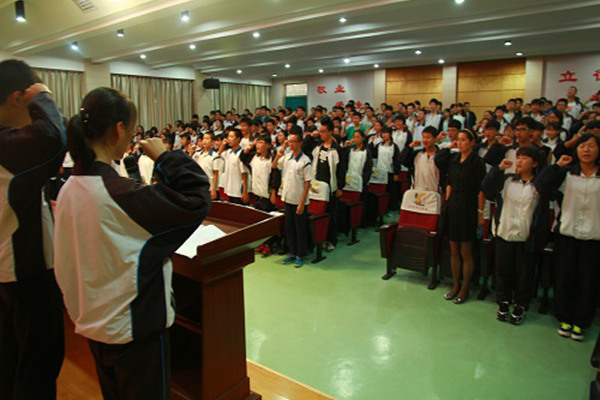 最后全体学生集体宣誓,坚定信心,为自己加油。通过这样的形式,不断激发同学们奋进的信念,积极向上的品质,为中考加油助威。