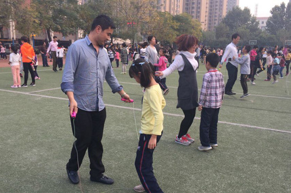 活动由全体家长和孩子共同参加,有跳绳、拔河、接力等极具趣味和竞争的项目,家长和孩子齐心协力,热情高涨,呐喊声加油声此起彼伏,比赛淹没在孩子们的欢声笑语和家长的鼓励声中了,名次已经显得不重要了。