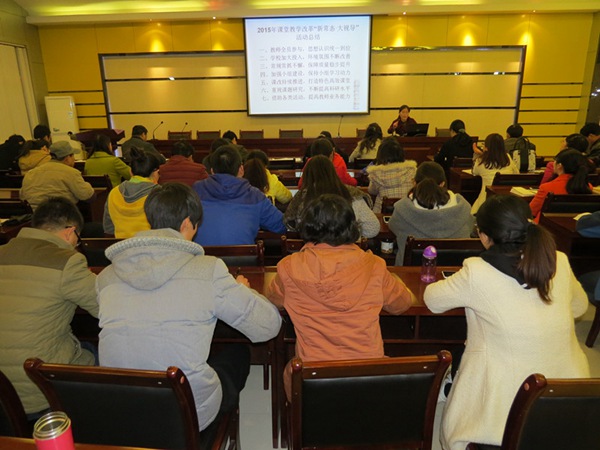 中心“新常态 大视导”活动开展以来,礼泉分校积极响应,结合学校实际制定了详细活动方案,有计划、有步骤地扎实落实各项活动,经过全校师生的努力,礼泉分校的课堂教学改革在原有基础上又有了新的发展。11月18日下午和晚上,礼泉分校在前期充分准备的基础上隆重地召开了2015年课改总结大会,会议按计划持续了4个小时,全体教职工参加了会议,书记沈素青主持会议。