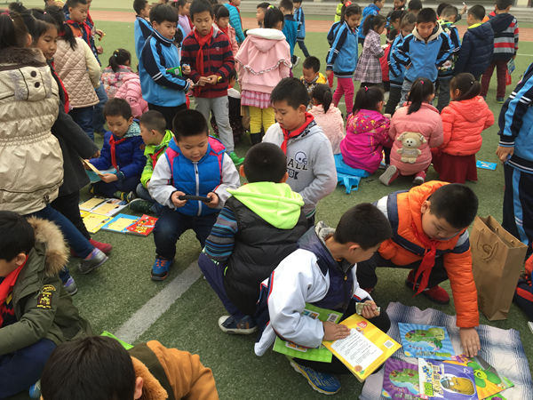 对于二年级的学生来说,图书交易会既新鲜又有趣,孩子们把自己最喜欢的书拿来贴上价格,进行交易,还向其他小朋友耐心地介绍自己的书籍,场面热闹。