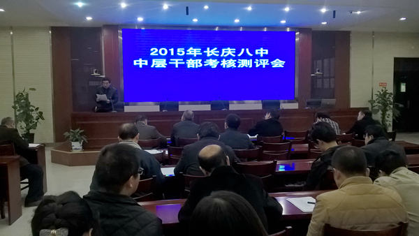 12月9日,长庆八中中层干部考核测评会在四楼会议室进行。个人述职,代表测评,现场统计。