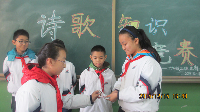 12月15日,长庆八中六年级举办了“与诗歌同行”知识竞赛活动。
