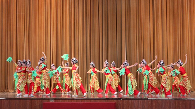 2015年3月份,泾河中心学校接到石油普教中心《关于组织参加全省第五届中小学生艺术展演活动的通知》(陕油教字〔2015〕3号),学校立即行动,召开行政会和教师会,成立了以校长张布伦,书记申小平为组长,德育处为落实主管部门,部分艺术教师为成员的组委会,申小平书记全程关注并指导艺术展演活动的开展,德育处、团队部多次召开组员会议,统一思想,明确了“保持学校合唱、书法绘画项目优势,力争在集体舞蹈方面有所突破”的参赛思路,对各项筹备工作提出明确的要求和具体的指导意见,在紧张的准备过程中,为使集体舞蹈有所突破、有创新,学校从三个方面入手: