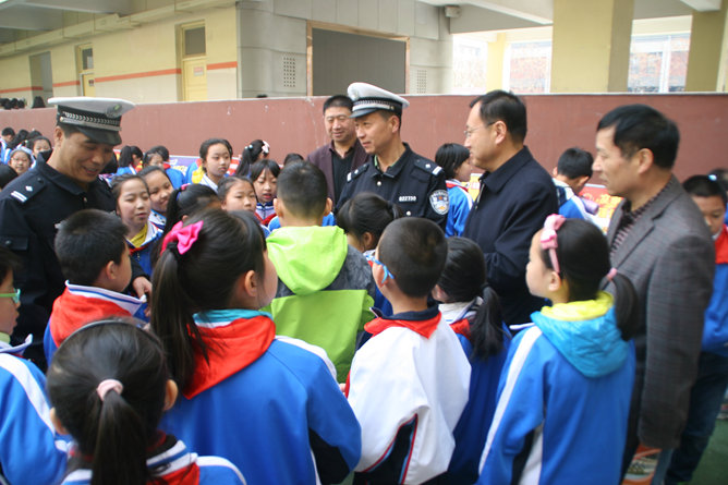 上午九点,经开区交警大队的两名警官来到学校,在校园内进行了交通安全主题的图片展览,内容简明直观,发人深省。同学们踊跃观看,深受教育。