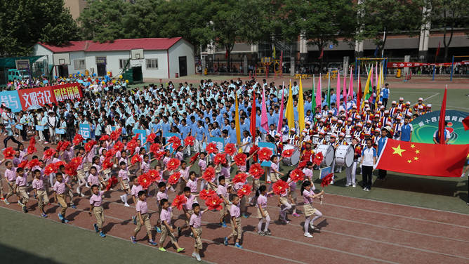 5月4日下午,长庆八中第十四届田径运动会在彩旗飘扬、锣鼓喧天的美丽操场上顺利开幕了。