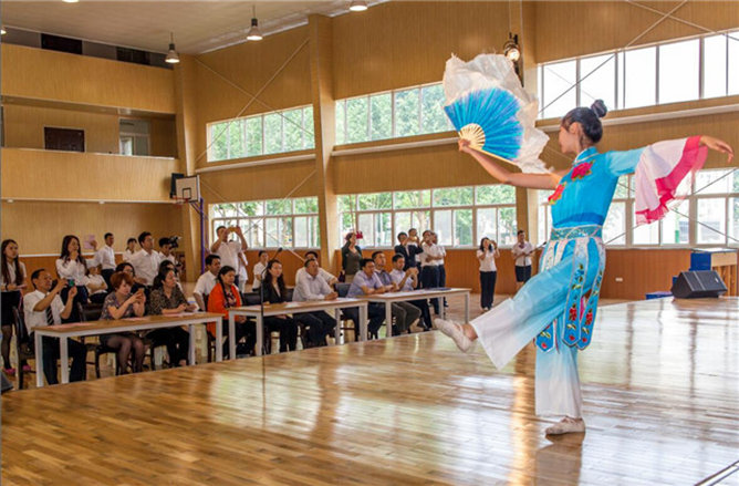 随后,专家组一行观看了学生大课间跑操和校园操展示活动。在学校多功能厅,专家组观看了文艺节目表演,学生美术作品展,实地查看了学校音乐教室、美术教室、书法教室等功能部室,还深入课堂听了学校音乐、美术课。分别召开了教师和学生座谈会,查阅了学校艺术教育资料,最后召开了反馈会。
