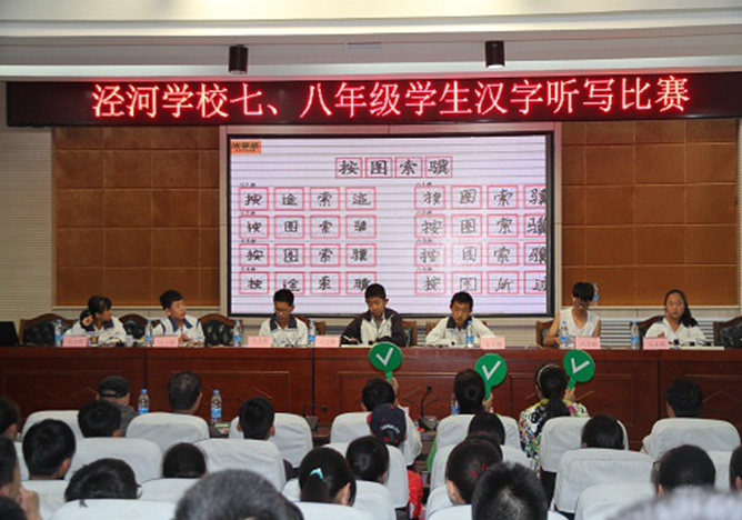 5月25日下午,西安泾河中心学校举行了中学生首届汉字听写比赛。七、八年级学生在全员参与的基础上,每班选拔4名优秀选手组成代表队参加了比赛。