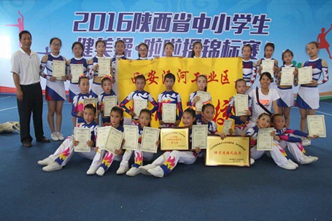 陕西省2016年中小学健美操、啦啦操锦标赛于近日落下帷幕,西安泾河工业区中心学校健美操队经过激烈角逐, 在全省69所学校230支代表队中脱颖而出,取得了小学组街舞啦啦操第三名、小学组竞技三人操第五名、小学组有氧徒手健身操第六名、初中组竞技五人操第四名的优异成绩,学校健美操队同时荣获“体育道德风尚奖”。