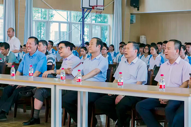 教育厅基教二处处长张荣祖(前排右三)等领导观看学生社团演出
