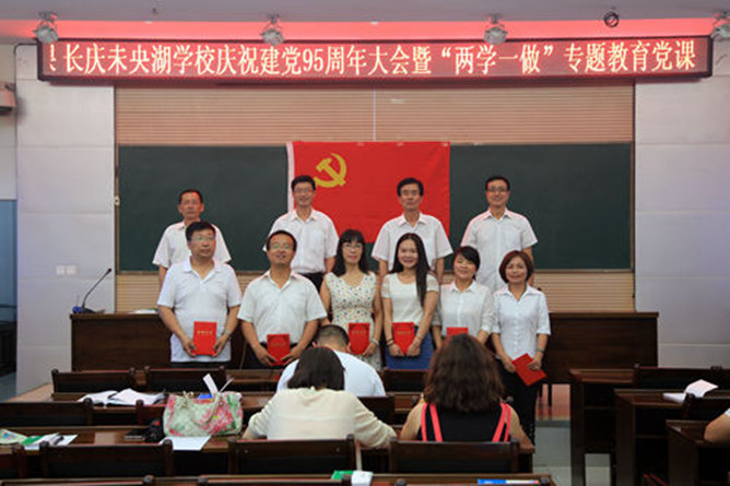 2016年6月29日,在中国共产党建党95周年来临之际,长庆未央湖学校召开党员大会,缅怀党的光荣历程,组织党员重温入党誓词,隆重表彰优秀党员,开展“两学一做”专题党课教育。会议由该校校长何胆孝主持。