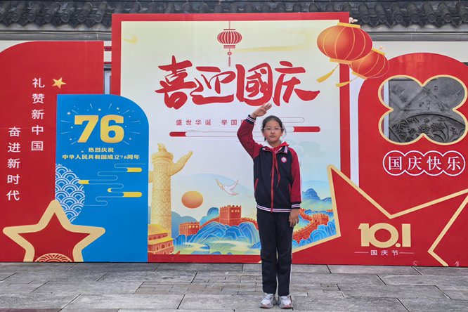 在国庆节即将来临之际,为庆祝中华人民共和国76华诞,弘扬爱国主义精神和集体主义精神,厚植爱国情怀,展现我校学生的精神风貌,长庆泾渭小学于9月27日—10月8日开展了“我与国旗合个影”主题教育活动。少先队员们用自己的方式表达着对祖国母亲的热爱。少先队员们纷纷和国旗合影,为祖国点赞,将自己和五星红旗定格在一起,一张张独具特色的合影蕴含着无限的热爱,表达对伟大祖国的美好祝愿,昭示着美好的未来。